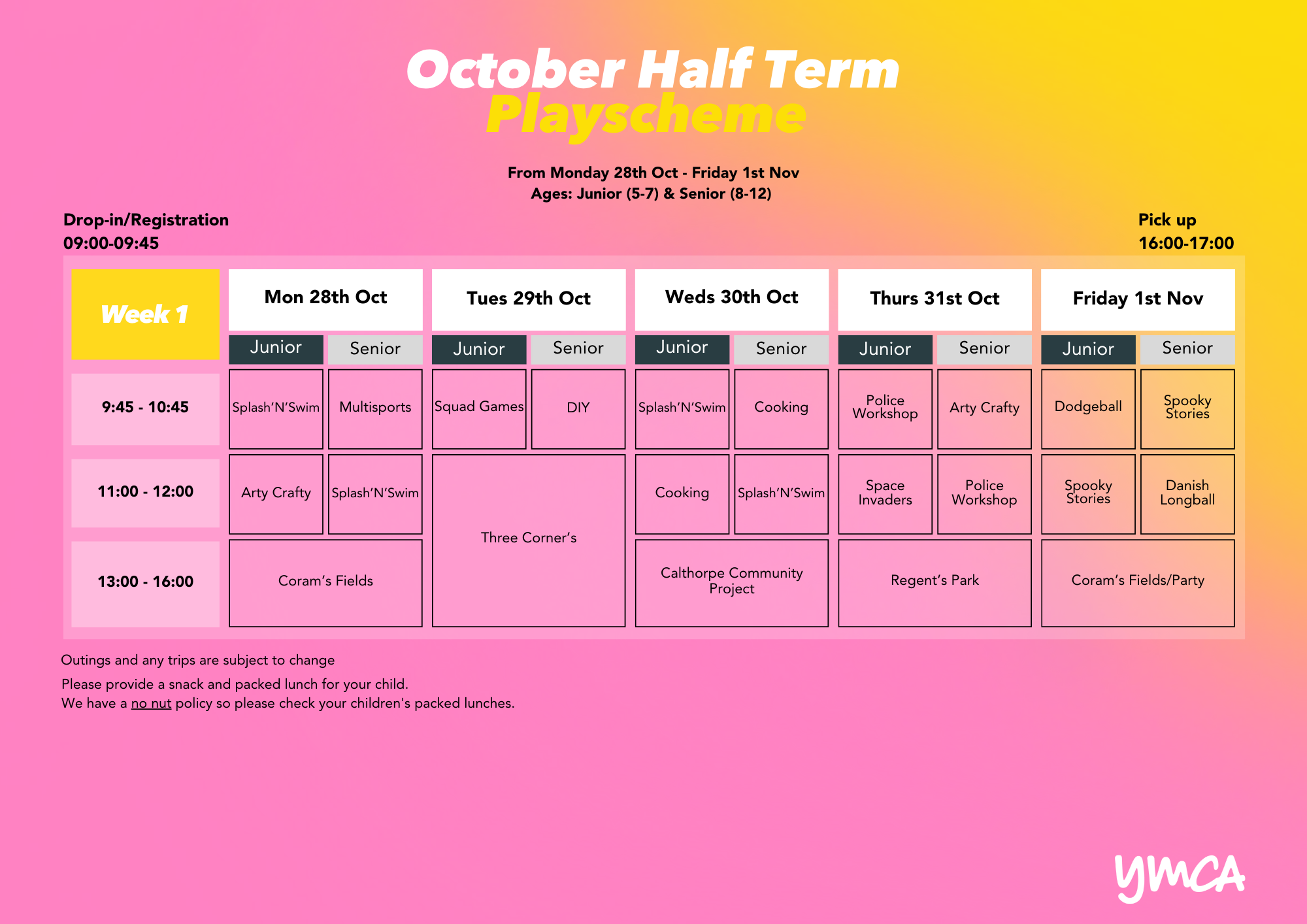 Children will be grouped by age to provide the most appropriate experience.